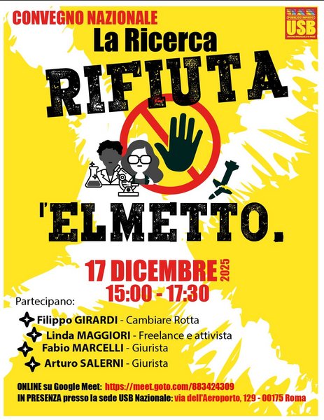CONVEGNO NAZIONALE 17 DICEMBRE a ROMA: LA RICERCA RIFIUTA L’ELMETTO